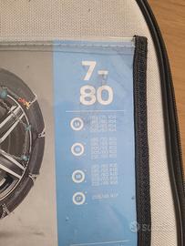 1 telo di protezione, 1 paio di guanti di protezione, maglie di ricambio, 1 paio di catene da neve