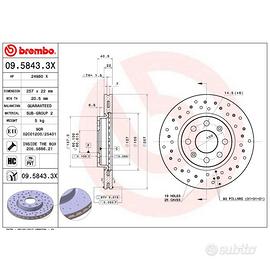 Coppia di dischi freno Brembo 09.5843.3H analoghi a 09.5843.3X codice Magneti Marelli MD714F.