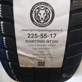 2 GOMME USATE INVERNALI ANNUNCIO 68325 Misura: 225 55 17 101V Marca: SUMITOMO Modello: WT200 Stagione: INVERNALI Stato: Usate, in perfette condizioni Battistrada residuo: 90% (come da foto/indicazioni) Perch scegliere i nostri pneumatici? Tutti i nostri pneumatici sono testati al 100% con macchinari prova-gomme di ultima generazione per garantire la massima sicurezza e affidabilità. Servizi e Contatti: Preventivi: Contattateci anche per preventivi su altre misure. Per informazioni o acquisti, Cell / WhatsApp: +39 389 763 5032 Montaggio e Bilanciatura: Possibilità di montaggio e bilanciatura direttamente presso la nostra sede. Ritiro: Ritiro a mano disponibile 7 giorni su 7. Spedizione: Spedizione rapida in tutta Italia al costo di 20,00 a coppia. Pagamenti: Accettiamo PayPal, bonifico e contrassegno. Abbiamo anche una vasta scelta di gomme auto, furgone, 4x4 e fuoristrada: invernali (termiche/da neve), estive e 4 stagioni. 225 55 17 | 225/55/17 | 225/55R17 | 225-55-17 | 225.55.17 | 225 55 R17)
