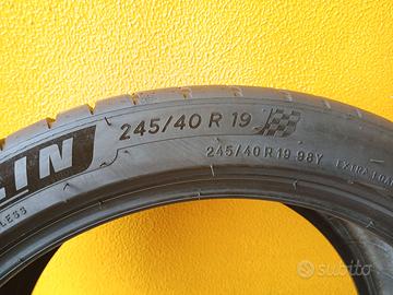 Marca e disegno pneumatici MICHELIN PILOT SPORT 4. Misura, indice di carico, codice di velocità e marcature: 245/40 R 19 98 Y EXTRALOAD. Anno Produzione 2023 (4723). 6 millimetri residui di battistrada.