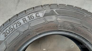 Marca e disegno pneumatici CONTINENTAL VANCOWINTER2. Misura, indice di carico, codice di velocità e marcature: 205/75 R 16 113/111 R MS. Anno Produzione 2024 (3324). 8.5 millimetri residui di battistrada.