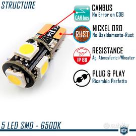 2 Luci LED T10 W5W 6500K Bianco GHIACCIO CANbus
