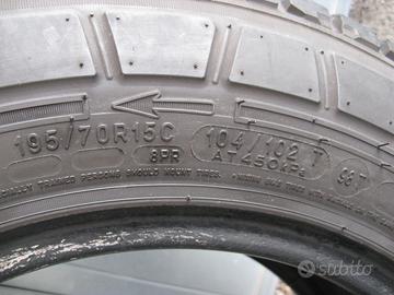 Vendo 2 (due) pneumatici Michelin Agilis CrossClimate misura 195/70 R15C 104/102T Pneumatici top di gamma "All Season" specifici per furgoni, van e camper (ideali per VW Transporter, Ducato, Sprinter, ecc.); mescola a lunga durata (resa chilometrica del 39% in più rispetto ai maggiori concorrenti All Season); fianchi rinforzati; marcature M+S e 3PMSF (fiocco di neve) per circolare in regola tutto l'anno; indice di velocità T (fino 190 km/h). Classe A per frenata su bagnato, ottima trazione su erba, fango, ghiaia e neve. • Pneumatici sostituiti esclusivamente per eccesso di zelo tecnico: possiedo un T4 Caravelle con trazione integrale Syncro e, a causa di un taglio accidentale su una singola gomma (retromarcia contro un marciapiede rotto e affilato), per precauzioneho sostituito l'intero treno per mantenere le rotazioni identiche al millimetro e preservare il giunto viscoso. • Battistrada: 55%di vita utile residua(battistrada effettivamente utilizzabile prima del limite di legge). Gli Agilis CrossClimate nascono conbattistrada di 9,2 mm e mantengono prestazioni costanti fino al limite legale, garantendosicurezza anche con usura avanzata. • DOT:20. I pneumatici sono stati montati su veicolo sempre rimessato in box, quando non in uso. La mescola Michelin Agilis CC è celebre per mantenere l'elasticità e le prestazioni nel tempo, a differenza di sottomarche economiche che si cristallizzano precocemente. • Condizioni:come da foto, usura uniforme su tutto il battistrada.No crepe o screpolature sui fianchi. Disponibile in totale 3 (tre) pneumatici: • Coppia (2 pneumatici): 70€ • Set da 3 pneumatici (2 + 1 di scorta): 100€ Ritiro a mano a Milano, zona sud MM2 Famagosta ----------------------------------------------------------------------------------------------------- Tag al solo uso della ricerca: Cross Climate 195 70 15C Gomme Furgone VW T4 Volkswagen Transporter Ruota di scorta Gomme 4 stagioni Multivan California M+S