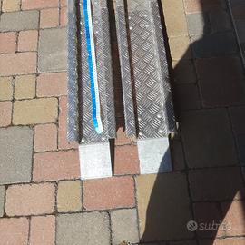 2 pedane da carico, lunghe 139 cm circa, con placca di fissaggio sul vano auto. Create per caricare una motocarrozzina su van/furgone, ma sono adatte anche per moto. In alluminio quindi leggere da maneggiare.