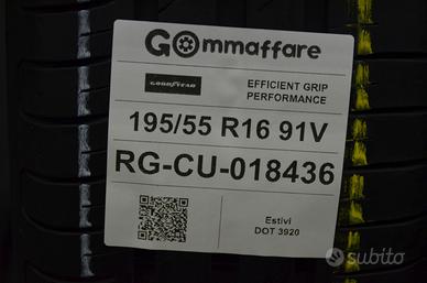 Codice ricambio: RG-CU-018436 Goodyear EFFICIENT GRIP PERFORMANCE, misura 195/55 R16, indice di carico e velocità 91V, condizione Usato buone condizioni, uso Estivo. Dimensione — 195/55 R16 C/V — 91V Marca — Goodyear Modello — EFFICIENT GRIP PERFORMANCE Condizione — Usato buone condizioni Categoria — coppia Battistrada residuo (mm) — 5,4 Stagione — Estivo DOT — 39/20 Runflat — No