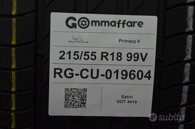 > Marca: michelin > Misura: 215/55 r18 215/55/18 2155518 > Modello: primacy 4 > Condizioni: usati >Tipologia: estivi > Carico e velocità: 99v > Battistrada residuo: 75% > Dot: 4419 > Sede: Via del lavoro n°13, Argelato(Provincia di Bologna) > Fisso: 0823-15 00 000 > Cellulare - whatsapp: 349-4496496