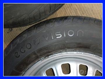 VENDO coppia di ruote complete per FIAT Panda vecchia dal 1986 al 2002 , composte da cerchi Originali in ferro da 13 pollici + pneumatici ESTIVI , marca OVATION , modello Eco Vision , misura 135/80 R13 70T , DOT 0124 , battistrada residuo praticamente pari al nuovo ( tutti i dati sono visibili in foto )