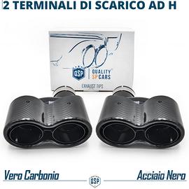 2 Terminale Scarico DOPPIO H CARBONIO Acciaio NERO