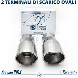 2 TERMINALI di Scarico OVALI Obliqui INOX CROMATO