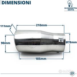 2 Terminali di Scarico OVALI Universali in ACCIAIOCromato Inossidabile SS304 | Taglio Obliquo | Con Bulloni Ad Avvitamento suMarmitte Dritte Ø da 49 a 78 mm - LOOK SPORTIVO RIVOLUZIONATO | Ovali Cromati Larghezza 110mm, Altezza 91mm,Taglio Obliquo " Fetta di Salame". - INSTALLAZIONE FACILE | Plug & Play, si Bloccano Stringendo 3 Bulloni, suMarmitte Dritte con Diametro Compreso Tra 49-78mm. - RESISTE AL TEMPO | Acciaio Inox SS304 Resiste a Ruggine, Scolorimento,Intemperie, Urti. - OMOLOGAZIONE | Non è Necessaria Alcuna Omologazione, Il Terminale Scarico èUna Decorazione che Non Varia gli Ingombri dell'Auto. INFO: ACCIAIO INOX SS304: L' Acciaio Inox SS304 Rappresenta uno dei più Costosi Acciai in commercio, ilFamoso "18-10" del Servizio di Posate o Pentole. E' un Acciaio Austenitico, poichè contiene un alto livello di Cromo,Esattamente il 18%, e l'8% di Nichel; COMPATIBILITÀ: - Tutti i Veicoli con Scarichi Singoli Dritti, con Marmitte Ø da 49 a 78 mm MONTAGGIO: 1) Misurare l'Apertura del Paraurti per Assicurare la Fuoriuscita del NuovoTerminale 2) Far Scorrere Il Nuovo Terminale sullo Scarico Esistente 3) Avvitare le Viti di Serraggio DETTAGLI TECNICI: - Materiale: Acciaio INOSSIDABILE - Sezione: Ovale - Taglio Obliquo: Si, a Fetta di Salame - Colore: Cromato - Finitura: Cromo - Peso: 0,435Kg (singolo) - Dimensioni: LUN da 210-185 mm - LAR 111 mm - H 90 mm - Metallo Composto: 18% Cromo, 8% Nichel - Magnetismo: No - Basso - Confezionamento: Box Cartone Originale - Resistenza alle Intemperie: ELEVATA - Bloccaggio: a Bulloni - Lavorabilità: Eccellente (si Presta alla Saldatura) PER INFO CONTATTARE AL 3927091031 ANCHE LINEA WhatsApp OPPURE VIA E-MAIL: rtautoitalia2018@libero.it CONSEGNA: - Effettuiamo Spedizioni 24-48H in TUTTA ITALIA - Ritiro in Sede con Possibilità di Visionare il Prodotto - Vendiamo solo Articoli Nuovi PAGAMENTI: - PayPal - Con Carta - Bonifico Bancario - Alla Consegna con Contrassegn