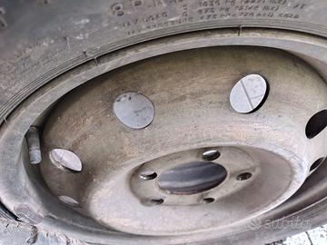 Vendo 4 gomme con cerchi per furgoni 5 fori 2 gomme praticamente nuove e due al 60 percento
