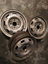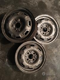 Tre (solo 3) cerchi in lamiera con relative gomme chiodate con camera d'aria per Vokswagen Golf MK1 (prima serie). Misura gomme 165/70 SR 13 (ma si possono adattare misure più grandi), misura cerchi 4,5Jx13ET45 in discreto stato, poco usati, erano montati a metà anni '80 su una Golf GLD. NON ADATTI A GOLF GTI (misura troppo piccola), ma a tutte le altre serie Golf MK1..