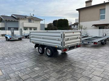 300x153 cm o 312x182 cm Carrello-rimorchio versioni doppio asse ruote alte sponde apribili ed amovibili effettivamente disponibili in piazzale in pronta consegna versione da 2700 kg a pieno carico declassabili a pesi minori a vs scelta sede Trailer Point 0415103718 o 3384042826