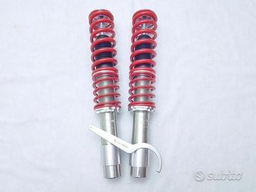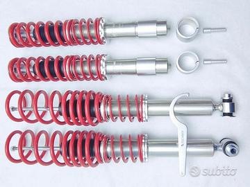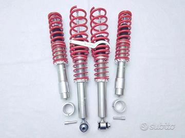 SPEDIZIONE INCLUSA 4 Ammortizzatori a Ghiera Regolabili in Altezza modello COILOVER che si possono installare su: Abarth Grande Punto Alfa Romeo 147 156 / 156 SW Mito Audi 80/90/B4 100 / 100 Avant / Quattro Coupe A1 / A1 Sportback A2 A3 A4 A5 A6 A8 TT BMW Serie 1 2 3 4 5 6 7 Z3 Chevrolet Cruze / Cruze SW Malibu Chrysler 300C Limousine 300C Touring Citroen C1 C2 C3 I C4 I Saxo Xsara ZX / ZX Break Dodge Magnum Fiat 500 / 500C Cinquecento Coupe Punto / Punto Cabriolet Seicento Ford C-Max Escort Fiesta Focus Galaxy KA Mustang-GT Puma Honda Civic / CRX Integra R Jazz II S2000 Mazda 121 III 2 3 323F / 323S VI MX-3 MX-5 RX7 RX8 Mercedes Benz Serie 190 Classe C CLK E SL Mini Mini / R50 Mitsubishi Lancer EVO IV - VI VII - IX Nissan 200SX 350Z / 350Z Roadster Almera Silvia Coupe Opel Adam Agila Astra Calibra Corsa Insignia A Kadett Omega Tigra Twintop Vectra Zafira Peugeot 106 107 108 206 207 306 307 406 Porsche Boxter Renault Clio Megane Scenic Twingo R19 Seat Alhambra Altea / XL / 4x4 Arosa Cordoba Exeo Ibiza Inca Leon Mii Toledo Skoda Citigo Fabia Octavia Superb Suzuki Splash Swift III Toyota Aygo Celica Lexus Corolla MR2 II Supra Yaris Volkswagen Arteon Bora Caddy CC Corrado Derby Eos Fox Golf Jetta Lupo New Beetle Passat Polo Scirocco Sharan Transporter Touran UP Vento Volvo 850 C30 C70 I S40 S70 V40 Combi / Hatchback V50 V70 I - 4 Ammortizzatori a GAS TA-TECHNIX con ghiera filettata / Abbassamento regolabile da 3,5 a 7 cm ( 2 Ammortizzatori Anteriori + 2 Ammortizzatori Posteriori ) 4 Molloni / Molle specifiche per l'assetto a ghiera regolabile che a volte sono gi installate sugli ammortizzatori 1 Chiave per la regolazione delle ghiere 1 Certificato di omologazione TUV - UniAssetto UniFISSO UniGhiera UniTATECHNIX TA TECHNIX - UNINUOVOMISTO UNINUOVOGHIERA1 - uni14042 -