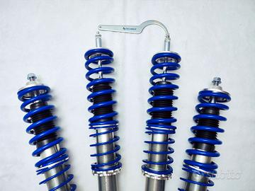 Gli assetti a ghiera filettati della ditta Tedesca migliorano la stabilità e la tenuta di strada la taratura è fissa e impostata per un utilizzo stradale / sportivo della vettura, senza togliere nulla al comfort di marcia.
