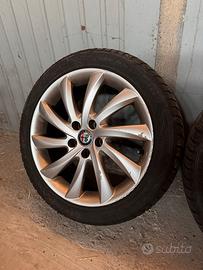 Vendesi 4 cerchi 17” originali Alfa Romeo derivanti da Giulietta con pneumatici 4 stagioni 225/45 R17 94Y double coin al 50%.