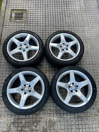 Vendo 4 ruote originali AMG da 18 pollici doppio canale, 7,5j et42 all anteriore e 8,5j et36 al posteriore, pertette senza graffi, comprensive di pneumatici runflat invernali Pirelli Sotto Zero al posteriore