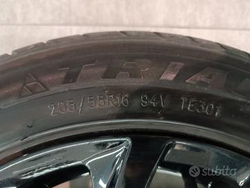 -> gomme Triangle 205 55 16 dot 22, battistrada medio 4 mm, ancora utilizzabili senza problemi.