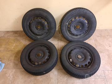 vendo 4 ruote complete di gomme invernali e copricerchi. cerchioni in ferro a 4 fori, montavano su Peugeot 108. gomme 165/65/14 m+s Formula copricerchi in plastica. tutto in buone condizioni, nessuna ammaccatura ai cerchi o tagli alle gomme.