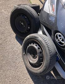 Vendo 4 cerchi in ferro con 4 pneumatici invernali 4 borchie marcate Toyota.