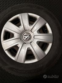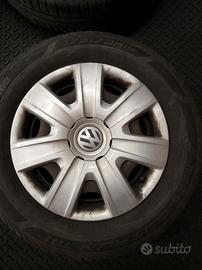 4 cerchi in ferro con gomme e copricerchi Vw polo