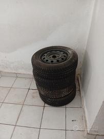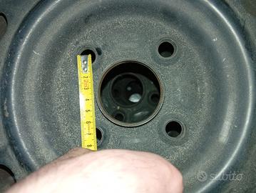 Vendo 4 cerchi in ferro da 14" a 4 fori. Montano pneumatici 165/70 R14. Interasse e dimensioni fori in foto.
