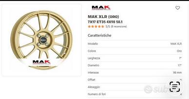 4 Cerchi in lega abarth MAK XLR diam17"- 4×98 ET35