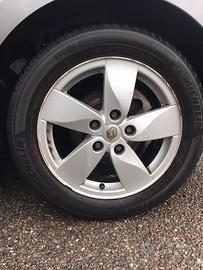 N. 4 CERCHI IN LEGA DA 16" 16X6.5 J16 H2H ET 47 A 5 FORI 5X114.3 ORIGINALI RENAULT ( MEGANE III), COMPRESI BULLONI SPECIFICI, GOMMATI CON PNEUMATICI ESTIVI 205/55/16 91V : 2 NEXEN NUOVI E 2 MICHELIN 80%. COMPATIBILI CON DIVERSE MARCHE E MODELLI: RENAULT, DACIA, NISSAN, SUZUKI, TOYOTA, HONDA,FORD, CITROEN, PEUGEOT, WOLKSVAGEN, SEAT, FIAT, OPEL, CHEVROLET, AUDI, SKODA, MERCEDES, ECC.. € 200 per chi interessato ho anche una ruota di scorta STESSE DIMENSIONI compresa di alloggio originale per crick, gancio e chiave Megane III € 70. Possibilita' anche di catene abbinate € 15 CONSEGNA A MANO. EVENTUALE COSTO DI SPEDIZIONE A CARICO DELL' ACQUIRENTE.