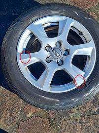 Come da titolo vendo 4 CERCHI IN LEGA Audi 16" (3 ottime condizioni e 1 con due lievi segni) indicati e visibili nella foto e con montate 4 gomme Nokian WR D4 invernali 205/60 R16 92H con battistrada 50%