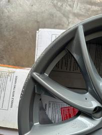 Kit completo di 4 cerchi in lega disegno ‘a turbina’ colore canna di fucile con misure anteriori 8J x 18" ET33, posteriori 9J x 18" ET34 e con attacco 5x110 mm. Montavano su una Giulia del 2016, sono stati usati con il treno di gomme invernali e hanno i segni dell’usura. Sono provvisti dei sensori di pressione originali Mopar.