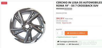 4 cerchi lega ds ds4 ds7 r19 lt4442