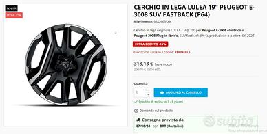 CERCHIO IN LEGA LULEA 19" PEUGEOT E-3008 SUV FASTBACK (P64) Riferimento: 98426695XK Cerchio in lega originale LULEA / FUJI 19" per Peugeot E-3008 elettrico e Peugeot 3008 Plug-in ibrido, SUV fastback (P64), produzione a partire dal 2024