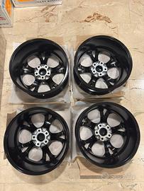 Vendo n° 4 pz cerchi in lega leggera MAK Lario 7,5J x 17 H2; offset ET: 31; n° 5 fori per bulloni di fissaggio al mozzo; PCD (Pitch Circle Diameter = diametro del cerchio primitivo = circonferenza su cui si trovano i fori per i bulloni di fissaggio): 110 mm. Finitura: Gloss black = Nero lucido. Condizione cerchi: NUOVI e MAI usati in scatole originali con relativi certificati ed istruzioni di cura e manutenzione.