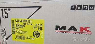 Applicabilità marca: Fiat Applicabilità modello: Ducato 4 cerchi Nuovi 15 Mak Stone 5 Attacco 5 x 118 Fiat Ducato Camper Furgone . Possibilità di montaggio . Possibilità di spedizione con corriere espresso BRT in contrassegno con 30 euro in piu