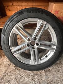 Vendo 4 cerchioni audi in condizioni perfette da 19 pollici + rispettivi pneumatici in ottime condizioni. I cerchi e gli pneumatici sono usciti dal concessionario con la vettura: audi q5 sportback anno 2024. Dati pneumatici: Continental 235/55 R 19 101 W In galleria sono presenti due immagini che riportano il prezzo originale del materiale in vendita nuovo