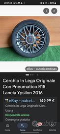 4 CERCHIIONI LANCIA Y 2016 + 4 PNEUM. 185 5T 15 6