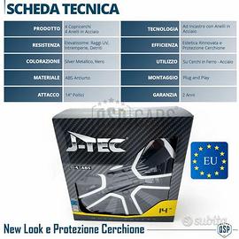 Set 4 COPRICERCHI per NISSAN con Ruote 14'', a Incastro, Design 15 Razze Neri e Silver | Montaggio Perfetto PLUG and PLAY | Realizzati in Europa - Look Rinnovato e Sportivo | Nero e Silver, Design 15 Razze - Eccellenza dei Materiali | MADE IN EU - Facile Installazione | A Incastro, Compatibilità e Ricambio Perfetto - Aggancio Sicuro | Mediante Anelli in Acciaio - Elevata Resistenza | Agenti Atmosferici e Detriti, NO Scolorimento INFO: Set 4 Copricerchi R14, Effetto Cerchi in Lega, Rinnovano il Look delle Ruote della Tua Auto, si Montano ad Incastro, Coprendo gli Antiestetici Cerchioni in Ferro o Acciaio da 14 Pollici. Design a 15 Razze, Silver e Neri, sono Ispirati ai Cerchi in Lega Sportivi dei più importanti Brand Automobilistici; di qualità Eccellente nella scelta dei materiali, Rifiniture del Dettaglio, tatto, e colorazione. Coppette che si Applicano SENZA MODIFICHE sui Cerchioni Originali, Fornendo un Look Sportivo di Impatto alle Ruote dell'Auto. COMPATIBILITÀ: - NISSAN ALMERA - NISSAN CUBE - NISSAN MICRA - NISSAN NAVARA - NISSAN NOTE - NISSAN PIXO - NISSAN PRIMERA - NISSAN KUBISTAR - NISSAN NV200 DETTAGLI TECNICI: - Materiale: ABS - Colore: Nero e Silver - Finitura: Opaco + Traslucido - Disegno: 15 Razze - Verniciatura: Non Verniciata, ABS di Qualità - Peso: 429 Gr - Dimensioni: 14 Pollici (L) x 5,5 Cm (P) - Temperatura di lavoro: Compresa tra - 28°C / + 45°C - Confezionamento: Box Cartone Originale PER INFO CONTATTARE AL 3927091031 ANCHE LINEA WhatsApp OPPURE VIA E-MAIL: rtautoitalia2018@libero.it CONSEGNA: - Effettuiamo Spedizioni 24-48H in TUTTA ITALIA - Ritiro in Sede con Possibilità di Visionare il Prodotto - Vendiamo solo Articoli Nuovi PAGAMENTI: - PayPal - Con Carta - Bonifico Bancario - Alla Consegna con Contrassegno