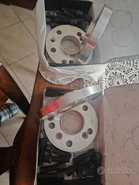 2 distanziali da 2 cm e 2 da 1.6 cm completi di bulloni misure 5x112 con centraggio 6.66 e 10 Bulloni 1.25 ottimi per molte auto e di ottima qualità