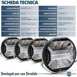 4 Fari Supplementari LED DRL Fuoristrada OMOLOGATI