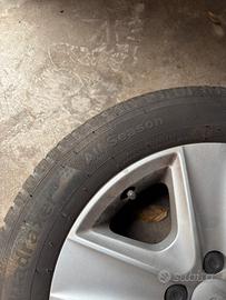 Vendo set di 4 ruote complete con gomme 4 stagioni Kleber Quadraxer (2 ruote) e Michelin (2 ruote) 205/55 R16 montate su cerchi in ferro 16” con copricerchi VW.