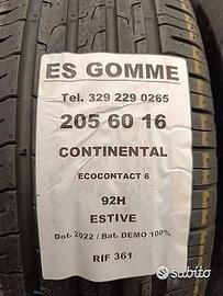 4 GOMME USATE ESTIVE ANNUNCIO RIF361 Misura: 205 60 16 92H Marca: CONTINENTAL Modello: ECOCONTACT 6 Stagione: ESTIVE Stato: USATE IN PERFETTE CONDIZIONI GOMME CON IL DEMO 100% DI BATTISTRADA RISIDUO Preventivi anche per altre misure: Cell e WhatsApp: 3292290265 Possibilita montaggio e bilanciatura, Ritiro presso nostra sede 7 su 7 Spedizione in tutta Italia costo di 15,00 a coppia modalita di pagamento PayPal e contrassegno Nostri pneumatici sono 100% provate con appositi macchinari prova gomme di ultima generazione. 205 60 16 205/60/16 205/60R16 205-60-16 205.60.16 205 60 R16 Abbiamo anche una vasta scelta gomme auto furgone 4x4 fuoristrada invernali termiche da neve estive 4 stagioni.