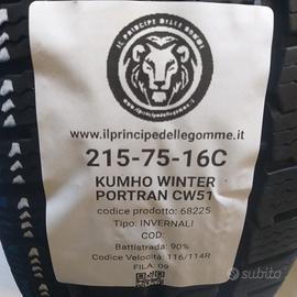 4 GOMME USATE INVERNALI ANNUNCIO 68225 Misura: 215 75 16C 116/114R Marca: KUMHO Modello: WINTER PORTRAN CW51 Stagione: INVERNALI Stato: Usate, in perfette condizioni Battistrada residuo: 90% (come da foto/indicazioni) Perch scegliere i nostri pneumatici? Tutti i nostri pneumatici sono testati al 100% con macchinari prova-gomme di ultima generazione per garantire la massima sicurezza e affidabilità. Servizi e Contatti: Preventivi: Contattateci anche per preventivi su altre misure. Per informazioni o acquisti, Cell / WhatsApp: +39 389 763 5032 Montaggio e Bilanciatura: Possibilità di montaggio e bilanciatura direttamente presso la nostra sede. Ritiro: Ritiro a mano disponibile 7 giorni su 7. Spedizione: Spedizione rapida in tutta Italia al costo di 20,00 a coppia. Pagamenti: Accettiamo PayPal, bonifico e contrassegno. Abbiamo anche una vasta scelta di gomme auto, furgone, 4x4 e fuoristrada: invernali (termiche/da neve), estive e 4 stagioni. 215 75 16C | 215/75/16C | 215/75R16C| 215-75-16C | 215.75.16C | 215 75 R16C)