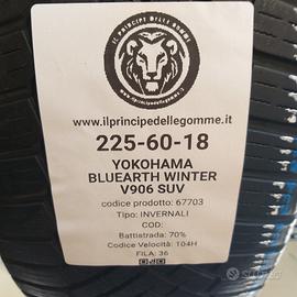 4 GOMME USATE INVERNALI ANNUNCIO 67703 Misura: 225 60 18 104H Marca: YOKOHAMA Modello: BLUEARTH WINTR V906 SUV Stagione: INVERNALI Stato: Usate, in perfette condizioni Battistrada residuo: 70% (come da foto/indicazioni) Perch scegliere i nostri pneumatici? Tutti i nostri pneumatici sono testati al 100% con macchinari prova-gomme di ultima generazione per garantire la massima sicurezza e affidabilità. Servizi e Contatti: Preventivi: Contattateci anche per preventivi su altre misure. Per informazioni o acquisti, Cell / WhatsApp: +39 389 763 5032 Montaggio e Bilanciatura: Possibilità di montaggio e bilanciatura direttamente presso la nostra sede. Ritiro: Ritiro a mano disponibile 7 giorni su 7. Spedizione: Spedizione rapida in tutta Italia al costo di 20,00 a coppia. Pagamenti: Accettiamo PayPal, bonifico e contrassegno. Abbiamo anche una vasta scelta di gomme auto, furgone, 4x4 e fuoristrada: invernali (termiche/da neve), estive e 4 stagioni. 225 60 18 | 225/60/18 | 225/60R18 | 225-60-18 | 225.60.18 | 225 60 R18)