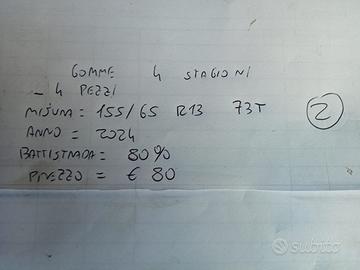 AUTODEMOLIZIONI FILIPPI VENDE 4 GOMME 4 STAGIONI 155/65/13 73T DEL 2024 AL 80% PER INFO STEFANO: 3355897652