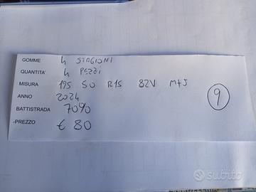AUTODEMOLIZIONI FILIPPI VENDE 4 GOMME 4 STAGIONI 195/50/15 82V M+S DEL 2024 AL 70% PER INFO STEFANO: 3355897652