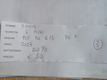 AUTODEMOLIZIONI FILIPPI VENDE 4 GOMME ESTIVE 155/70/13 75T DEL 2023 AL 80% PER INFO STEFANO: 3355897652