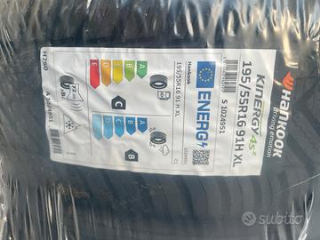 Vendo quattro gomme 4 stagioni, nuove e mai usate, marca Hankook misure 195/55R16 91H XL . Le gomme sono disponibili per un periodo limitato.