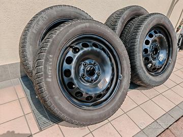 4 gomme invernali con cerchi e copricerchi opzionali marca Pirelli misura 205/55 R16 91H M+S cerchi 5 fori per Skoda Audi VW Seat