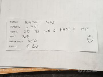 AUTODEMOLIZIONI FILIPPI VENDE 4 GOMME INVERNALI M+S 215/75/16 C 113/111R M+S DEL 2019 AL 70% PER INFO STEFANO: 3355897652