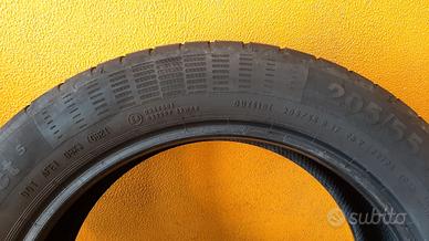 Marca e disegno pneumatici CONTINENTAL CONTIECOCONTACT5. Misura, indice di carico, codice di velocità e marcature: 205/55 R 17 95 V . Anno Produzione 2021 (0621). 5.5 millimetri residui di battistrada.